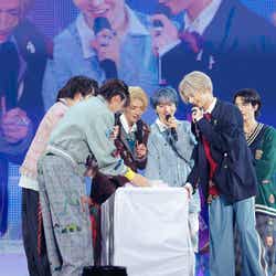 その後の「マルチバース・アドベンチャー」「Go to the Moon」では、メンバーがトロッコでスタンド席へと足を運び、ファンのもとへ。ファンに向かってタオルを投げ入れるなど、近いからこその交流を楽しんだ。「多分、僕のソネット」の最後にはメンバー全員がぎゅっと集結。肩を寄せ合うような可愛らしいシルエットに、観客からも思わず笑顔がこぼれる。