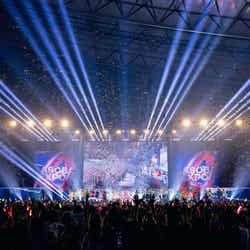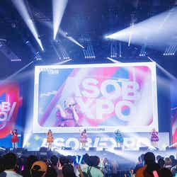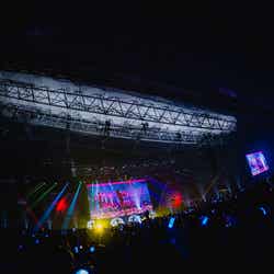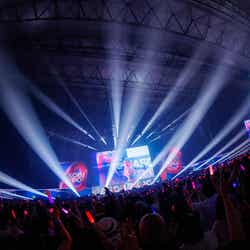開演から6時間を超えた時間帯に「NEW KAWAII」の弾けるようなビートに合わせてFRUITS ZIPPERのメンバーが新衣装で登場すると、観客は懸命に手を振り、会場の高揚感が一気に高まる。続く「わたしの一番かわいいところ」では、イントロと同時にひときわ大きな歓声が起こり、サビでは会場中からコールが響いた。ラストまで勢いを緩めることなく、FRUITS ZIPPERは“かわいい”と“全力”を武器に、観客の心をしっかりと掴んでみせた。イベント終盤に登場したのは、グローバルに活動を展開する新しい学校のリーダーズ。「Go Wild」「Toryanse」と立て続けに披露し、会場のテンションを一気に引き上げた。続く「オトナブルー」では“首振りダンス”に合わせてフロアが揺れ、サビでは大きな歌声が響きわたる。ラストスパートではSUZUKAが客席に降り立ってパフォーマンスをする演出を交えながら、「One Heart」で老若男女が好き放題に躍るダンスフロアへと会場を変貌させた。