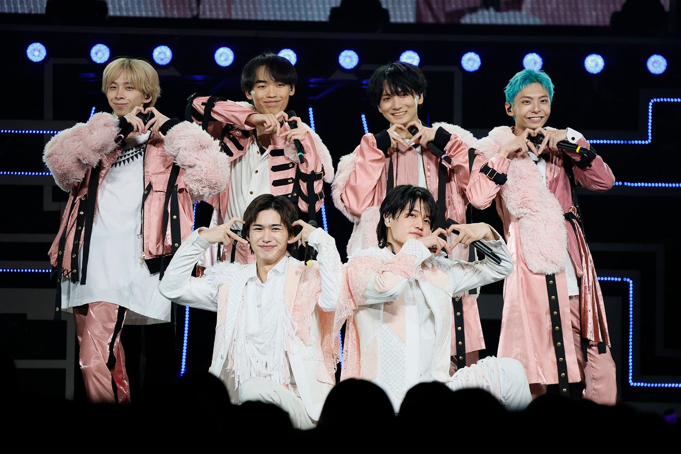 それぞれのソロステージも個性が光った。岡崎はKis-My-Ft2玉森裕太の「Share Love」で、マネキンを女性に見立ててパフォーマンス。マネキンの横に跪き手の甲にキスをするとドレスやステージが一斉に光に包みこまれ、客席からは一層大きな声が上がった。さらに、特技のピアノを活かし嵐・二宮和也の「虹」を弾き語り。優しい音色と歌声で会場を包み込んだ。大西がソロで歌唱したのは山下智久の「はだかんぼー」、King & Prince永瀬廉の「きみいろ」。「俺と一緒にデートしよ」というセリフで始まった「きみいろ」では、ステージ上に設置されたベッドやテーブルのセットに“恋人目線”のカメラがあり、頭を撫でるような仕草や愛おしそうに見つめる表情で恋人同士のような甘い時間を再現。ラストは「大好きだよ」と言い放ち、ファンは歓喜と興奮の渦に巻き込まれた。