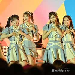 そして、20周年記念シングルとして8月13日にリリースされる最新曲「Oh my pumpkin!」へ。「大声ダイヤモンド」では向井地美音が「みんな声出せ〜!」と煽り、ボルテージを高めた。「そんなに好きだったら」を続けてパフォーマンスし、ラストは「ポニーテールとシュシュ」。誰もが乗れる夏の鉄板ソングで魅了した。