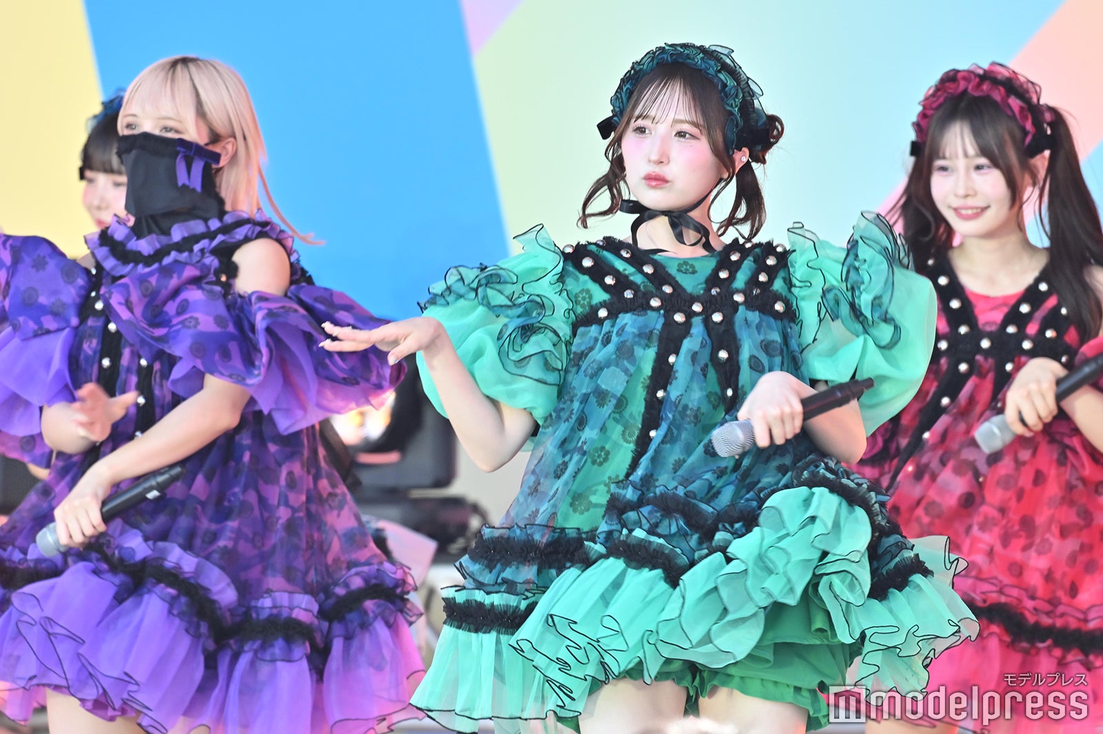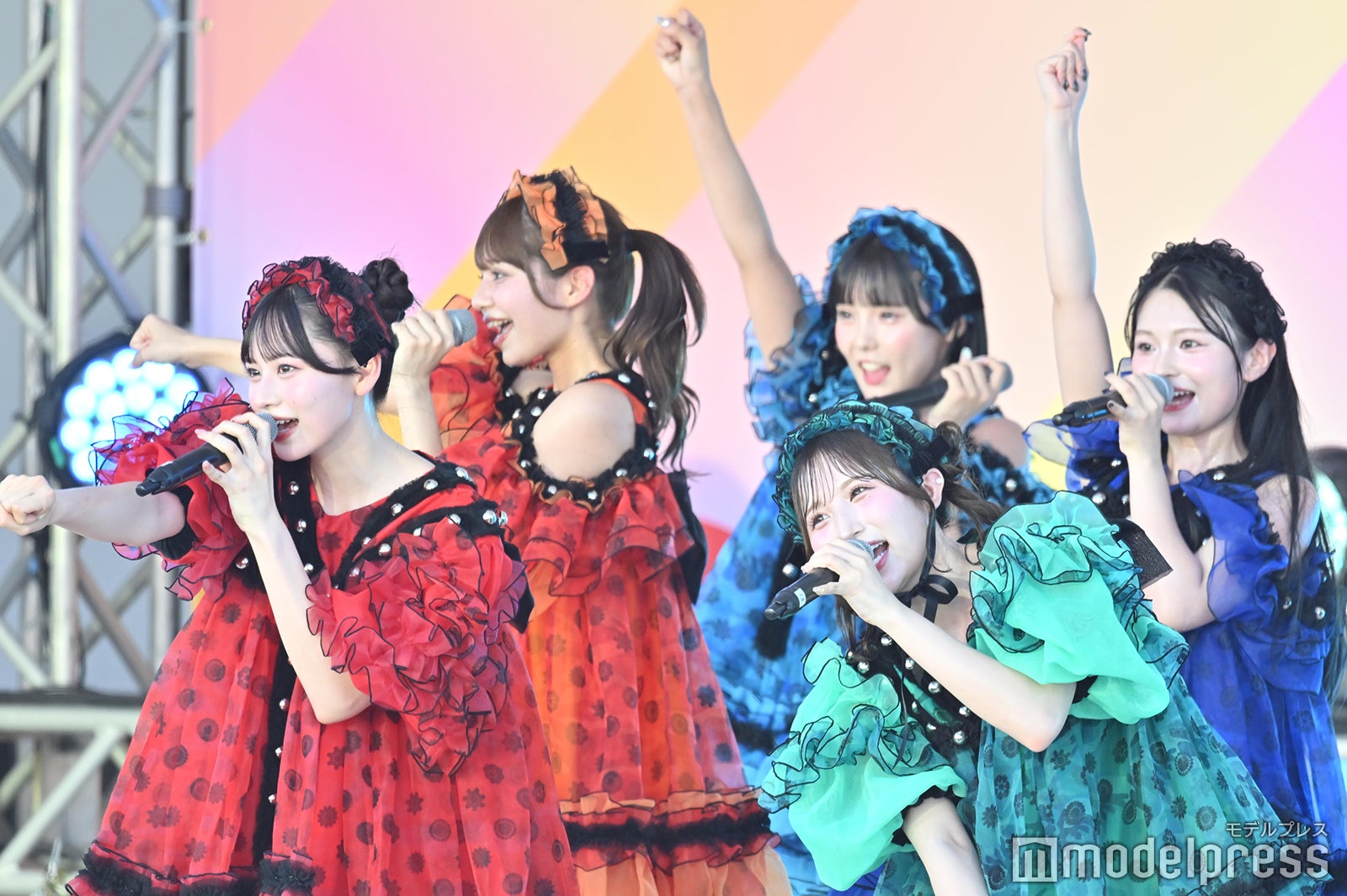 Overtureに乗せて、カラフルなメンバーカラーの衣装で登場したCANDY TUNE。可愛らしい歌詞で注目を集めた「キス・ミー・パティシエ」からスタートし、1曲目から熱いパフォーマンスで観客を惹きつけた。続いて、恋する女の子の心情を歌った「エトセトLOVE YOU」、アイドルファンの気持ちを赤裸々に歌った「推し◆好き◆しんどい」(※◆はハートマーク)を披露。コール&レスポンスで会場の熱気をさらに高めた。MCで福山梨乃は「CANDY TUNEはデビューから3年連続でTIFに出演させていただいているんですけれども、3年目にしてHOT STAGEにたどり着きました~!」と喜びをあらわに。メンバーも「最高の景色」と口にした。「後半戦、行っちゃってもいいですか?」という呼びかけで始まった後半戦。1曲目の「夏しかサマーー!◆」(※◆はハートマーク)では、「持ってきました!日焼け止め お水もしっかり飲んで対策!」という歌詞に合わせてメンバーが水を飲むなど、夏の野外フェスにピッタリの楽曲でここでしか見られないパフォーマンスを繰り広げた。
