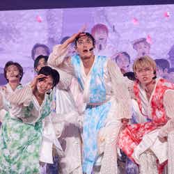 オレンジヘアにイメージチェンジした姿で登場した瞬間から歓声をかっさらったタカシ。ペンライトのウェーブを見て「綺麗すぎてこの海飛び込みたいもん」という素直でストレートな感想を口にする純粋さも彼の魅力の一つ。聞く人の心にダイレクトに響く歌声は、超特急に欠かせない。