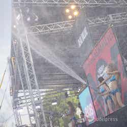 同イベントは別府温泉から湧き出る温泉水を約1000トン準備し、盛大に放水する音楽フェス。オープニングはイベント公式テーマソング「BUKKAKE CHANCE!!!」を堀江氏やMCの澤田拓郎・田島芽瑠・後藤郁らが念願の初披露を行った。堀江氏と同じくイベントのオーガナイザーを務める溝口勇児氏は「こんな晴天の中、別府のフェスにお越しくださいまして本当にありがとうございます。夜まで楽しいイベントが続きますので、最後まで楽しんでもらえたら嬉しいです」と呼びかけた。オープニングには後援する大分県の副知事・桑田龍太郎氏らも登壇。別府八湯温泉まつり実行委員長・権藤和雄氏のカウントダウン「5・4・3・2・1・ぶっかけ~!」でテーマソングが再び流れ、ステージの堀江氏、溝口氏を筆頭に会場の四方八方から温泉水が放出され、観客をずぶ濡れにさせた。