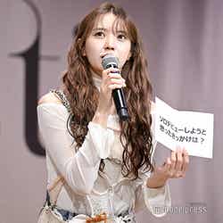 会見では、芸能活動10周年の節目にyoustiとして音楽活動をスタートさせた小林にちなみ、BOXの中に入った20個の質問から10個答えるという企画が。“作詞はいつ・どこで・どんな風に行なっている?”には「今回はほとんどの楽曲で作詞に携わらせていただいたんですけど、夜寝る前に考えていたものが多いかなと思います」と打ち明け、「日中は違う誘惑が多くて(笑)、違うことをやったり、いろんなやることが多かったので、完全に寝るってときに書き出すことが多かったですし、“今日は書く日”ってしてカフェに行って書いたりしたときもありました」と説明した。“ソロ活動を発表したときに1番最初に連絡をくれた人は?”という質問には、近しい人には発表前に知らせていたことを明かし「発表したあとに連絡をくれた人は、グループ時代にお世話になっていたスタッフさんですね」と説明。メンバーからの反応については「私がライブに行かせていただいたときがあったんですけど、そのときに『MV見ました』って言ってくれたりしました」とうれしそうに話した。