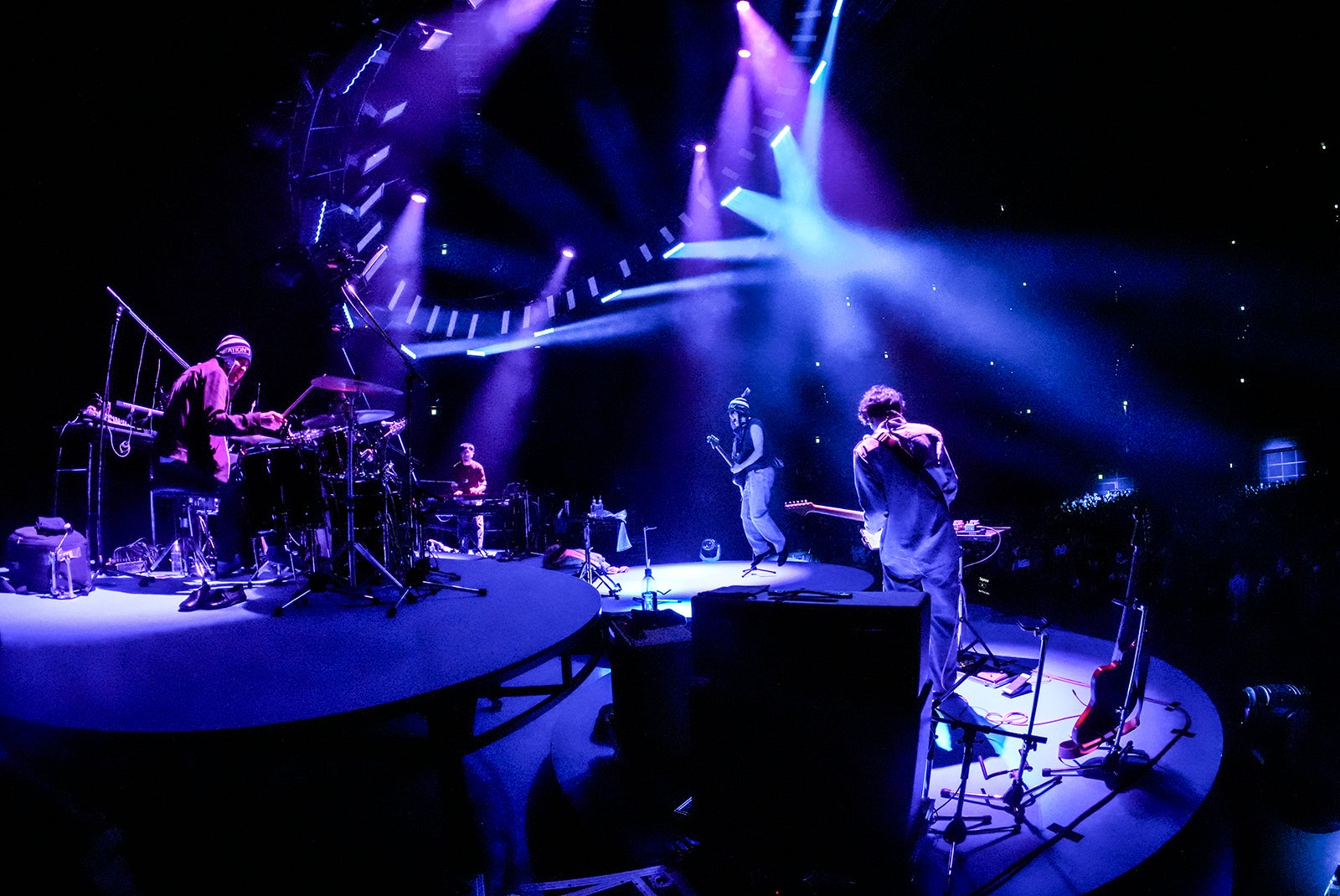 あいみょんが作詞・作曲を手掛けた「キスだけで」では、1番の女性目線のパートを柔らかく丸みのある声で、2番の男性目線のパートでは表情を引き締め、骨太な声で歌い分ける。1曲の中で別人格を行き来するかのようなその表現は、まさに俳優・菅田将暉の真骨頂といえる表現力の賜物であった。また、ライブ中盤に披露した「I’m in shock!!」では、グッズのニット帽をかぶり、上裸姿で登場。カラフルな照明の下、音楽に身を委ねながら自由にステージを楽しむ姿でファンを惹き込んだ。