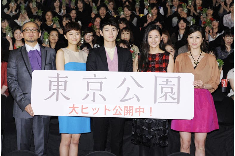 俳優の三浦春馬、女優の榮倉奈々、小西真奈美、井川遥らが18日、都内にて同日公開の映画「東京公園」の初日舞台挨拶を行った。