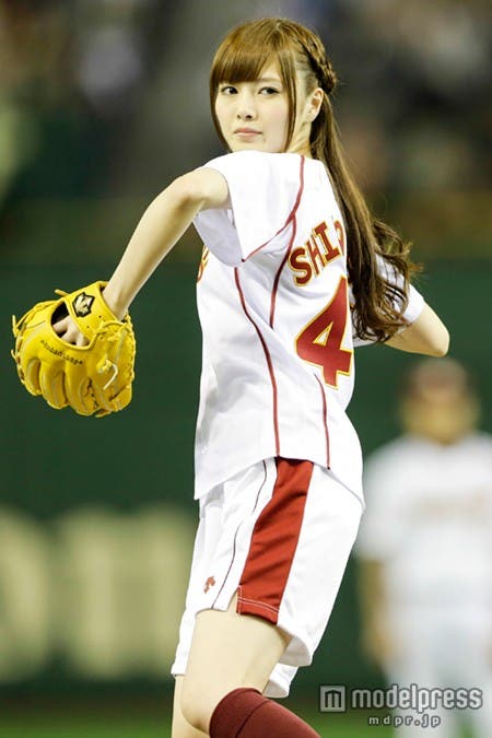 乃木坂46の白石麻衣が9日、東京ドームで行われた「東北楽天ゴールデンイーグルスVS北海道日本ハムファイターズ」戦で始球式を行った。