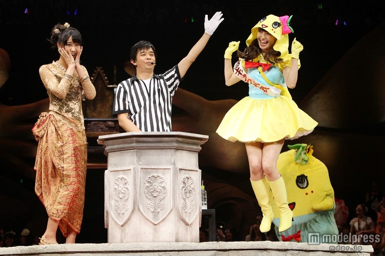 小嶋陽菜、ゆるキャラ“ふなっしー”と登場 AKB48「第4回じゃんけん大会」