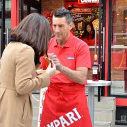 店長を務めた感想を求められると、「やっぱり美味しいものを勧めたいですね。言葉だけじゃなくて(実際に)食べさせたいです」とコメント。「カンパリはソーダで飲めば飲みやすいし、人と出会ったら『ちょっと1杯飲もう』、夜はまた素敵な女性とカウンターで飲めるし、いろいろな飲み方ができるから、ピッツァと一緒にみんなに食べさせたい。笑顔にしたいですね」と接客を楽しんでいる様子を見せた。
