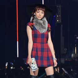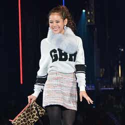 また、筧はチェック柄のスカートに袖にファーがあしらわれたトレンチコートを羽織ったスタイリングを披露。ステージ終盤では、タレントの丸高愛実によるアゲアゲなDJプレイに合わせモデル仲間と楽しげにダンスしていた。