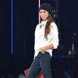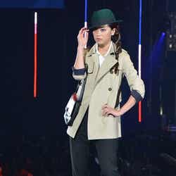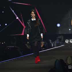 「LIMITED EDITION VIVAYOU」のステージに出演したダレノガレは、白衿レースのワンピースにライダースジャケットを羽織り、赤いスタッズのショートブーツをアクセントにした着こなし。クールビューティな眼差しでランウェイを歩くと会場から大きな歓声が沸いた。
