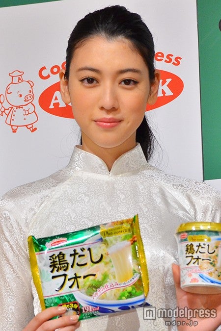 モデルで女優の三吉彩花が、ベトナムの衣装であるアオザイを着て登場した。