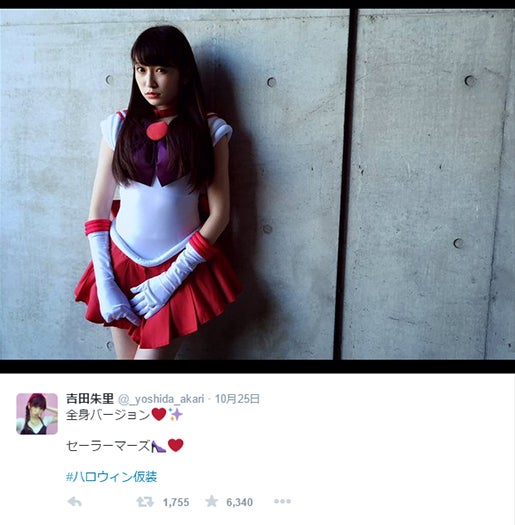 NMB48の“アカリン”こと吉田朱里が「美少女戦士セーラームーン」のセーラーマーズに扮した姿を披露し話題を呼んでいる。