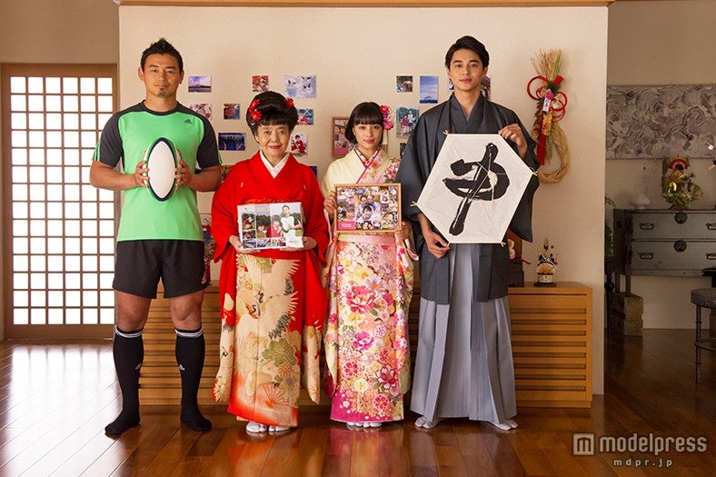 モデルで女優の広瀬すずは、樹木希林、東出昌大、ラグビー日本代表の五郎丸歩選手と、28日より放送される2篇のTVCMに出演。東出と広瀬が一緒にコマ回し・羽子板を楽しむシーンや、五郎丸選手がエプロン姿でお雑煮を運ぶなど、年末年始恒例となった同CMを、4人が彩る。