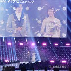 「2人がずっと幸せでいられるようにメッセージを送りたいと思います」と吉川が意気込み、終始盛り上がりを見せたステージが終わると、新田は吉川を最後までしっかりとエスコートして退場。舞台袖の見えないところでおじぎする姿も見られ、MCの3人を感動させた。