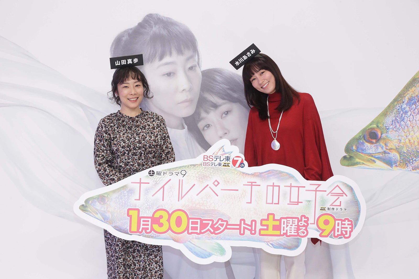 女優の水川あさみと山田真歩が、BSテレ東 土曜ドラマ9「ナイルパーチ女子会」(1月30日よる9時から)の記者会見に出席した。