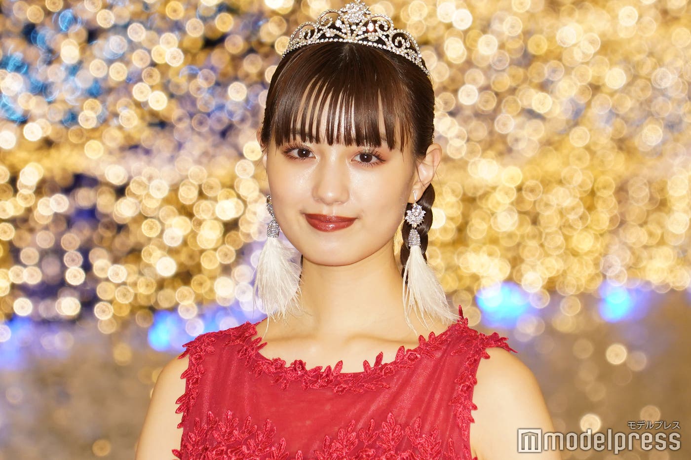 女優の鶴嶋乃愛が15日、東京・大井競馬場で開催された「東京メガイルミ 2021-2022 点灯式」に俳優の奥野壮と出演し、深紅のドレススタイルを披露した。