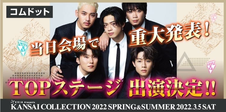 5人組YouTuber・コムドットが、3月5日に京セラドーム大阪にて開催される「EXIA Presents KANSAI COLLECTION 2022 SPRING&SUMMER」(関西コレクション)で、イベントのトップステージに登場することが3日、わかった。