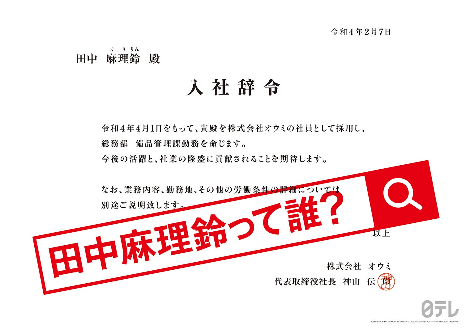 「入社辞令」広告が話題「田中麻理鈴って誰?」解明した人からは「もしかして…」