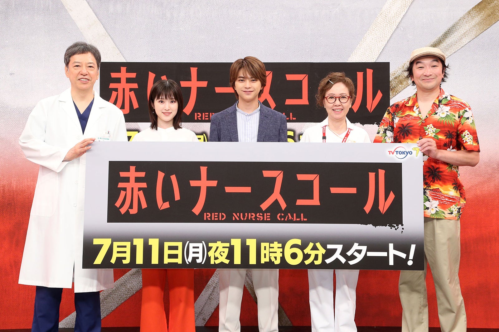 Sexy Zoneの佐藤勝利が主演、女優の福本莉子がヒロインを務める7月11日スタートのテレビ東京系ドラマプレミア23『赤いナースコール』(毎週月曜よる11時6分~11時55分)のオンライン記者会見がこのほど行われ、佐藤と福本のほか、共演する池田鉄洋、板尾創路、浅田美代子が出席。佐藤の回答に福本が感心する場面があった。