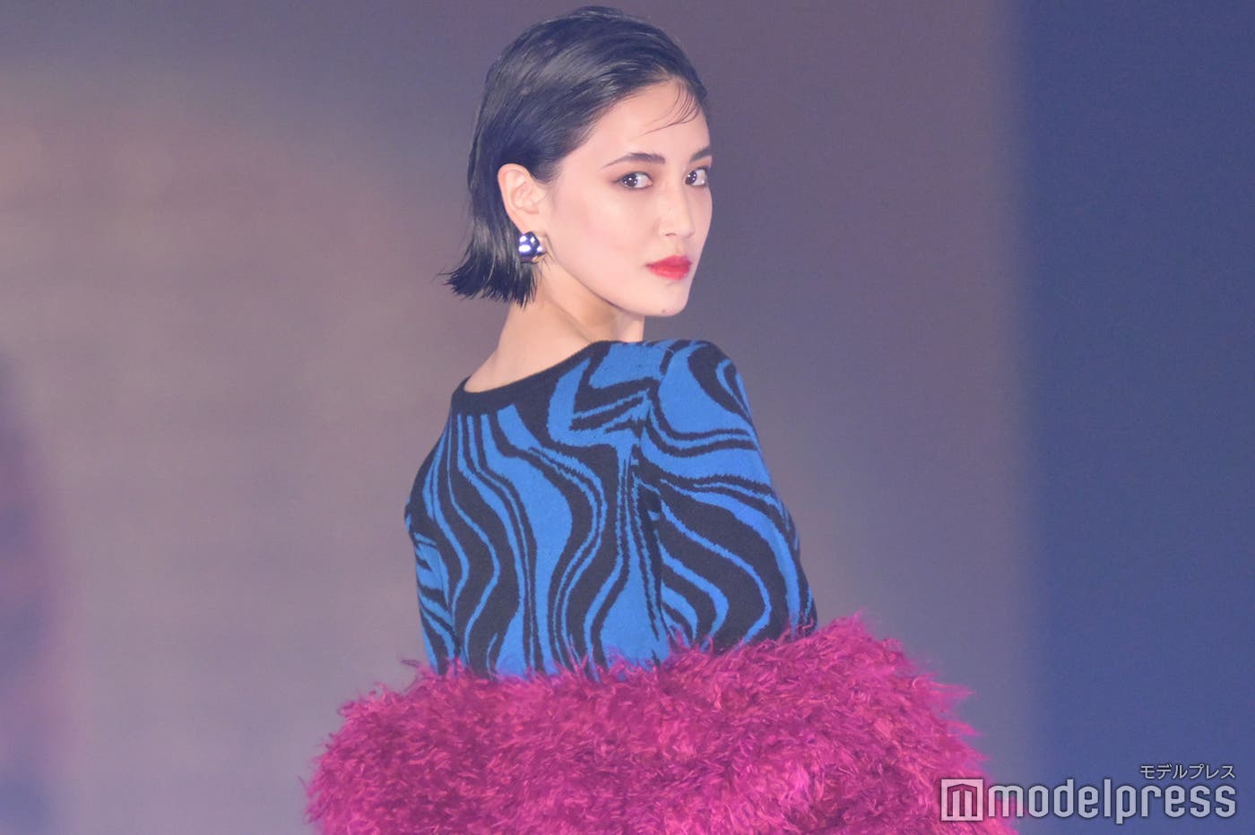 藤井夏恋、ど派手コーデで着こなし堂々ランウェイ 真紅リップで妖艶に<GirlsAward 2022 A/W>