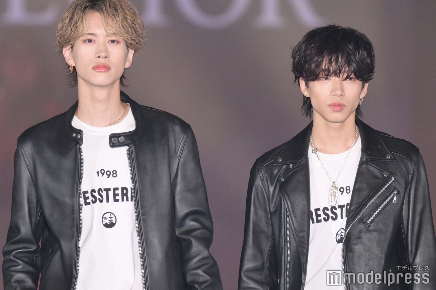 “アホと弟”で話題のもーりー&しゅーと、レザージャケット合わせがおしゃれ 抜群スタイル際立つ<GirlsAward 2022 A/W>