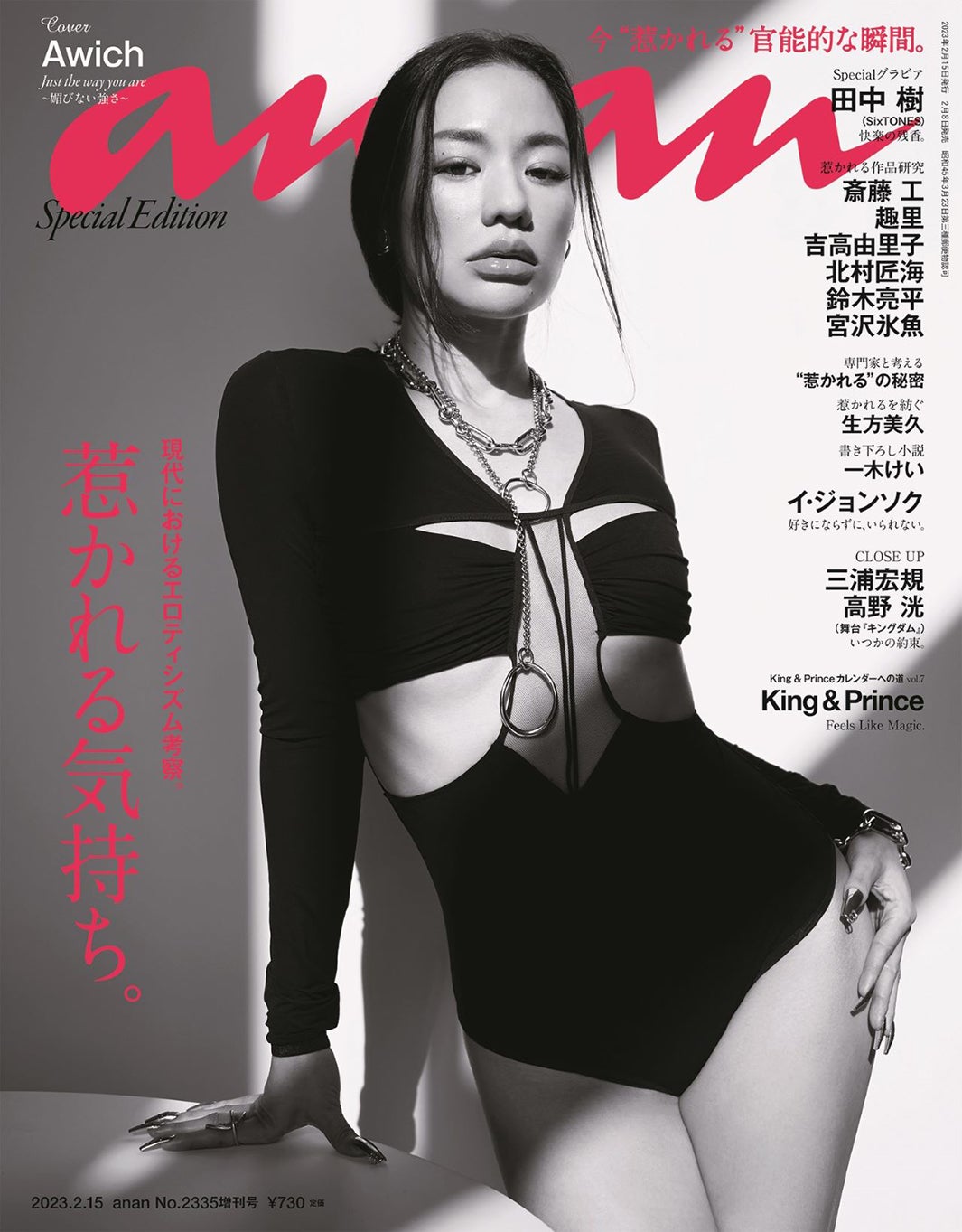 “ヒップホップ界のクイーン”の異名を持つラッパーのAwichが、8日発売の女性グラビア週刊誌「anan」2335号スペシャルエディション版の表紙に登場。鍛え上げられた肉体美を披露した。