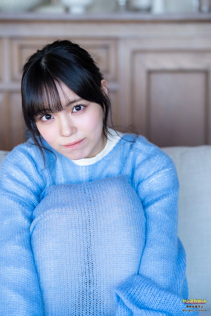 STU48の岩田陽菜が、26日公開の「ヤンマガWeb」の企画「週刊STU48」に登場。上目遣いショットを披露した。