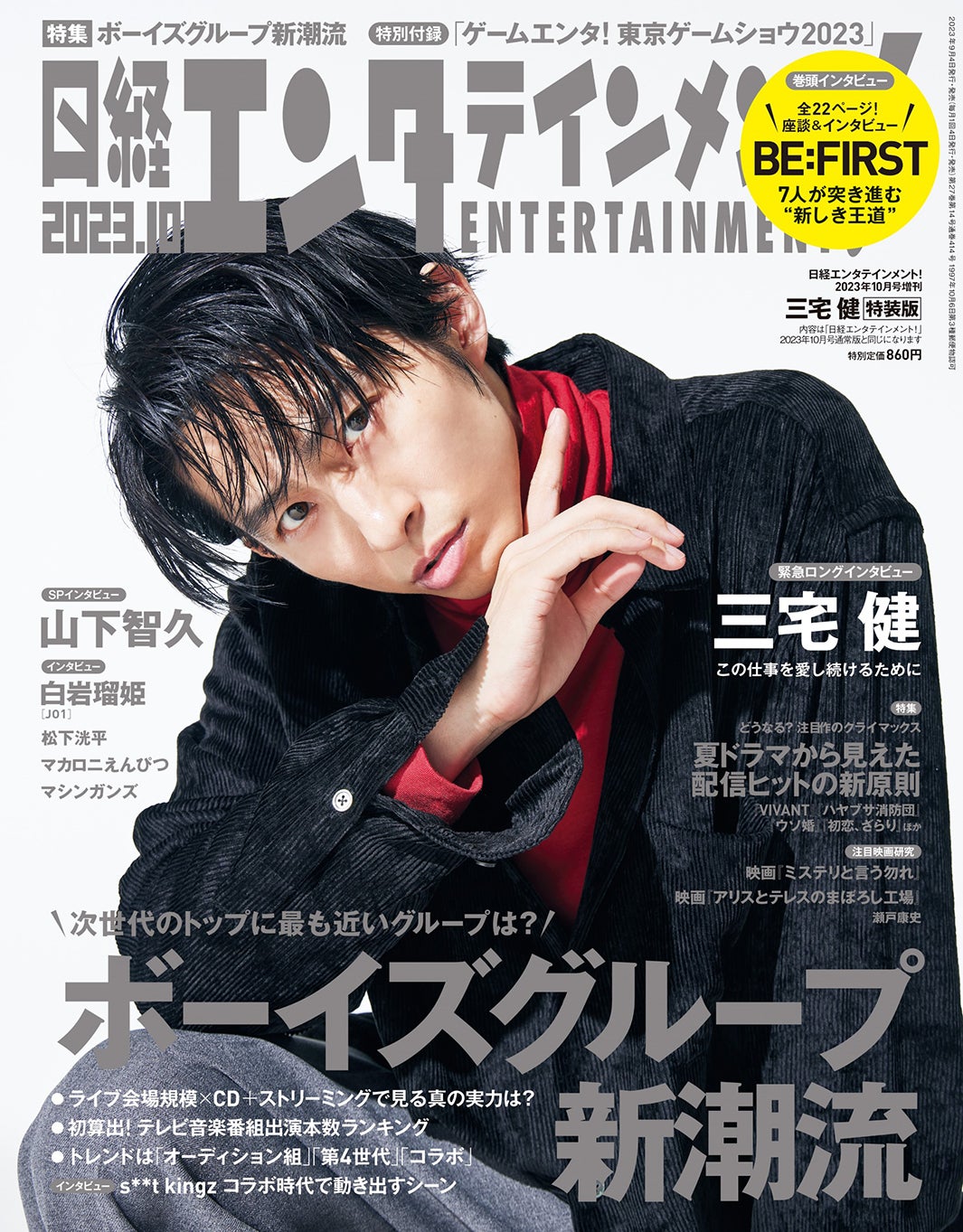 7月2日に滝沢秀明氏の新会社「TOBE」所属を発表した三宅健が9月4日発売の『日経エンタテインメント!』(日経BP)10月号特装版の表紙に登場。「この仕事を愛し続けるために」と題したインタビューで、事務所を新たにした理由や、滝沢氏との関係、今後の展望などについて語っている。