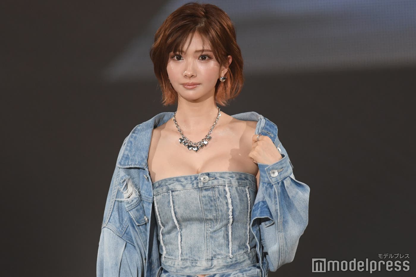 “伝説のキャバ嬢”ひめか、美デコルテ大胆披露 デニムセットアップコーデで登場【札幌コレクション2024SS】