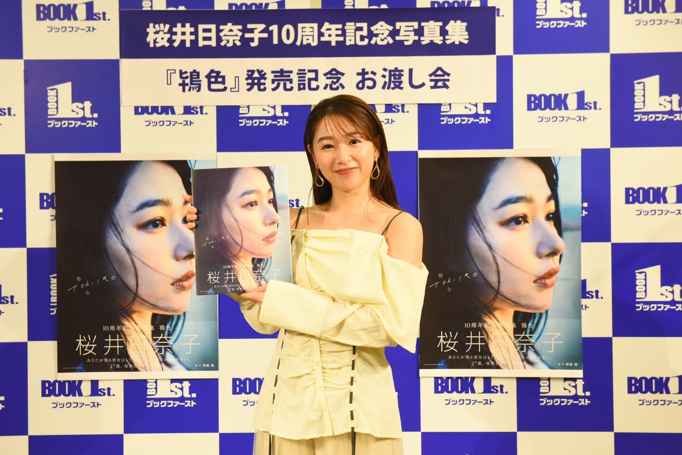 女優の桜井日奈子が7日、都内で行われた「桜井日奈子10周年記念写真集 鴇色」(東京ニュース通信社/発売中)の発売記念会見に出席した。