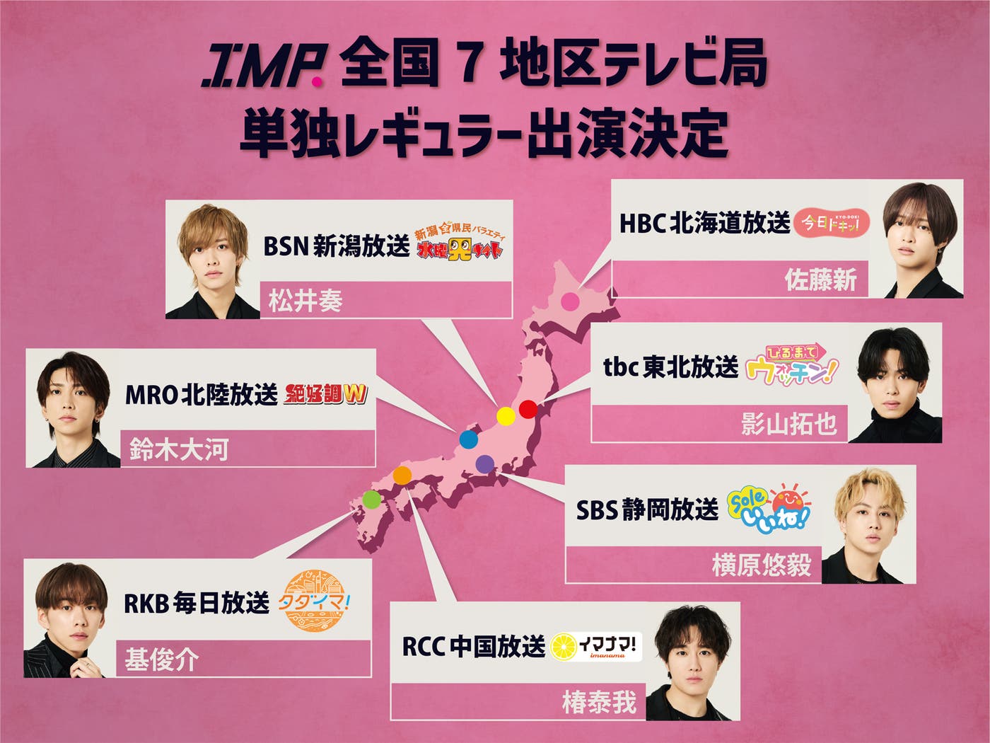 IMP.“全国7地区テレビ局”7人それぞれが単独レギュラー出演決定