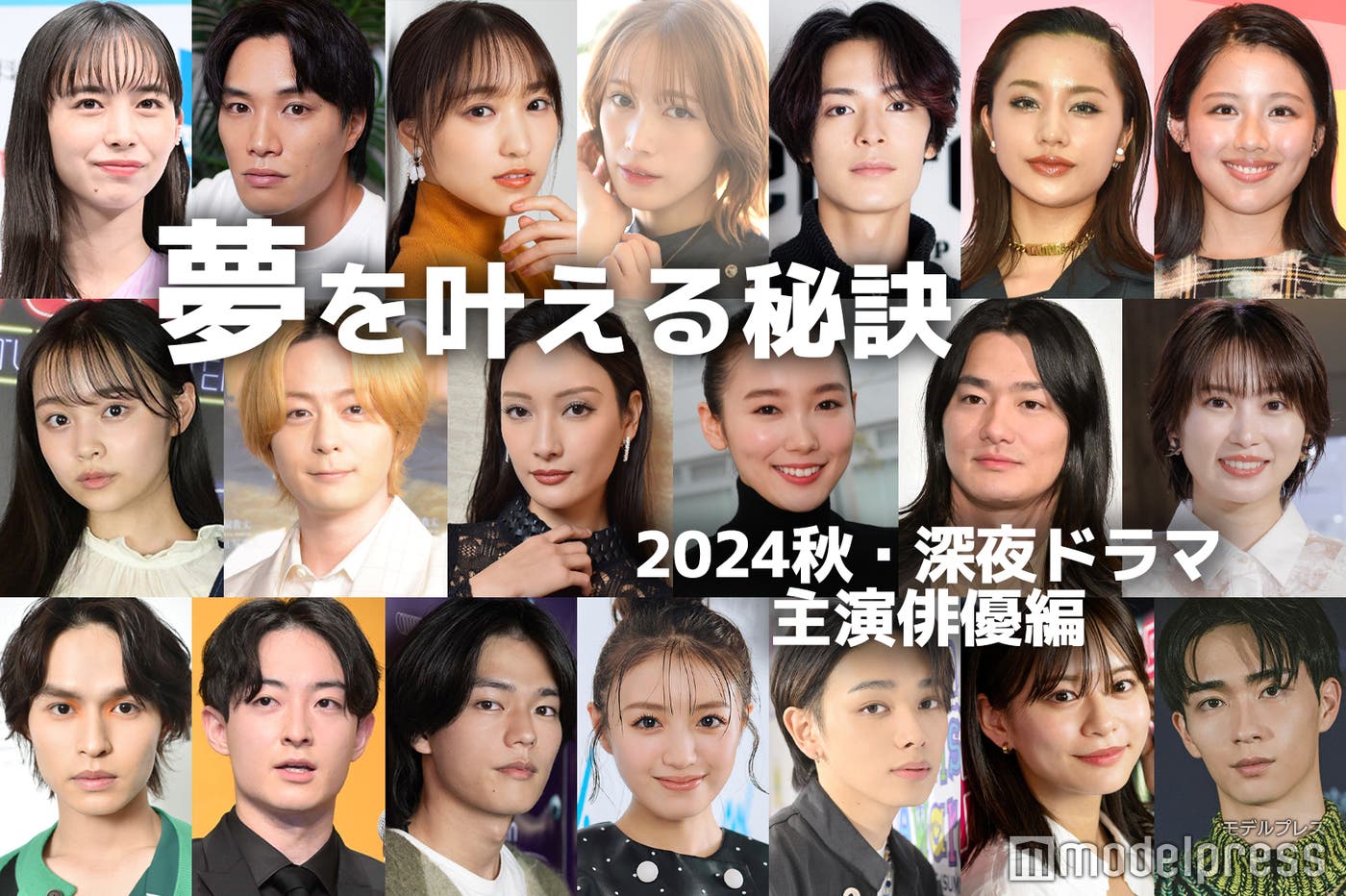 モデルプレスでは、多数のモデル・俳優・アーティストにインタビューを実施。夢を追う読者やファンに向けて、最後にいつも“夢を叶える秘訣”を質問している。今回2024年秋クールの深夜ドラマで主演を務める俳優たちが語った“夢を叶える秘訣”をまとめて紹介する。