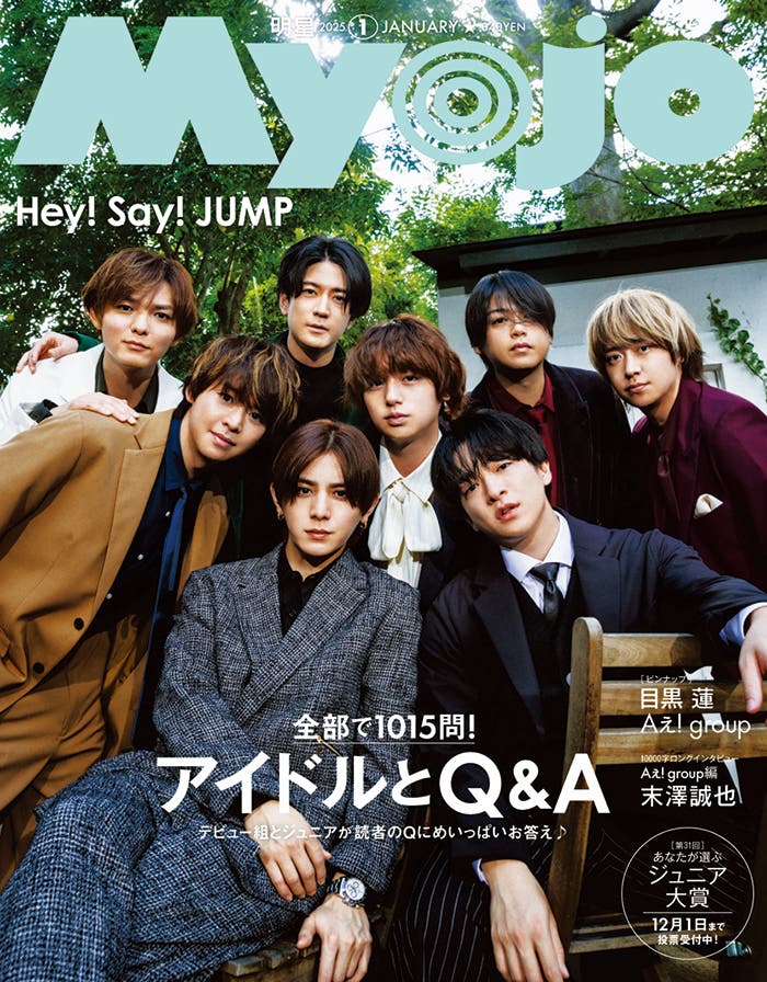 Hey! Say! JUMPが、11月21日発売の雑誌「Myojo」(集英社)1月号の通常版とちっこい版、2パターンの表紙に登場。8人全員が同誌誌面に登場するのは、2023年7月号以来となる。