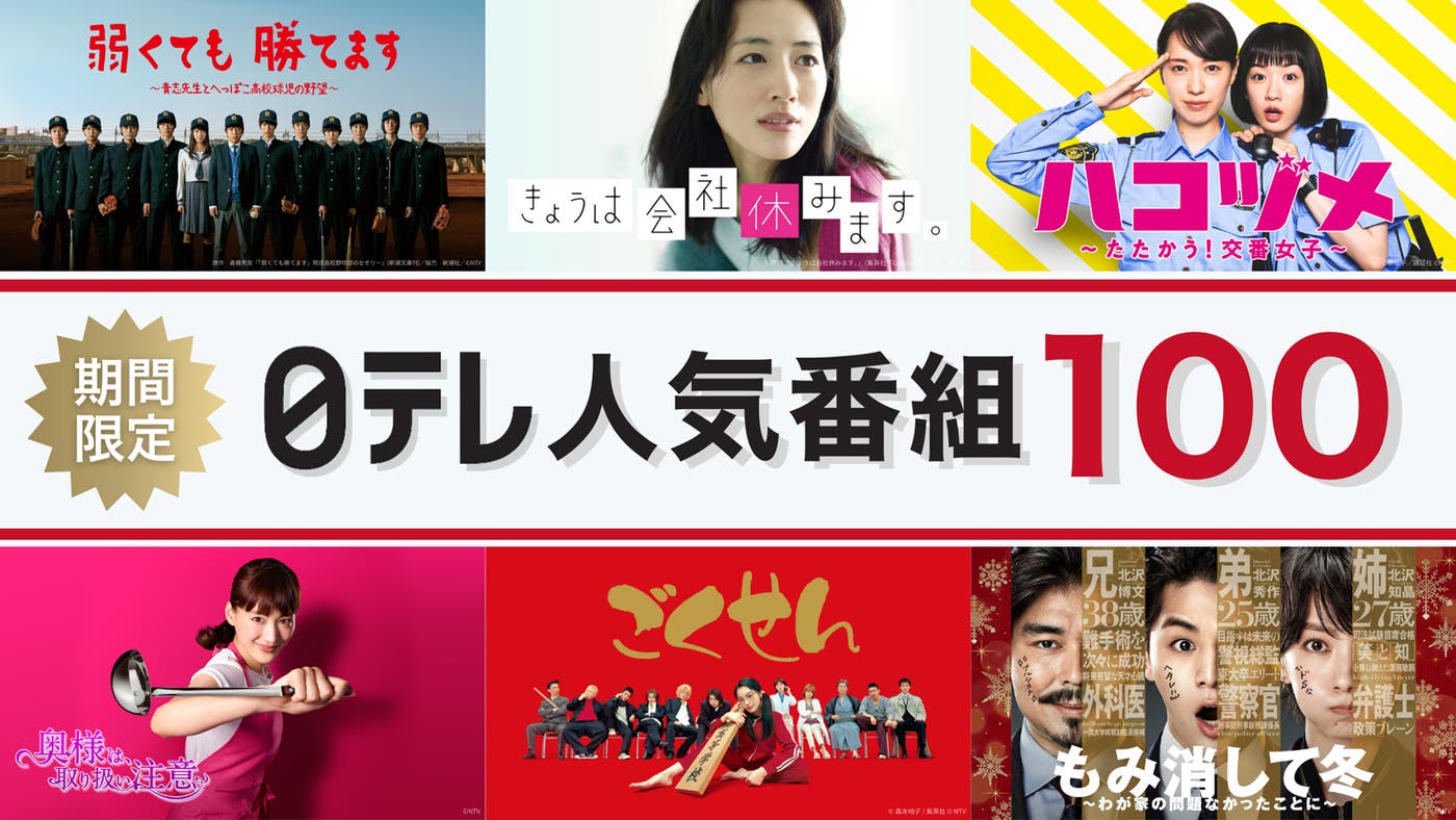 2025年2月14日より開催中の、日本テレビで放送されたドラマ・バラエティー・アニメなど100作品以上がTVerにて無料で見られる「期間限定!日テレ人気番組100!」。3月1日からは第2弾として、名作ドラマのほか、バラエティー・アニメも続々配信される。