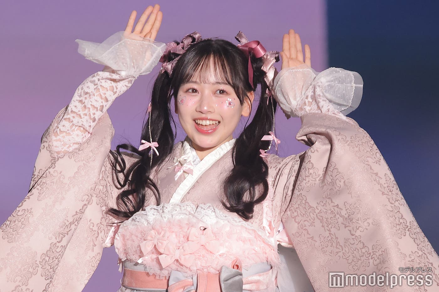 FRUITS ZIPPER松本かれん、うさぎポーズに会場悶絶 ピンクの袴姿でランウェイ【超十代2025】