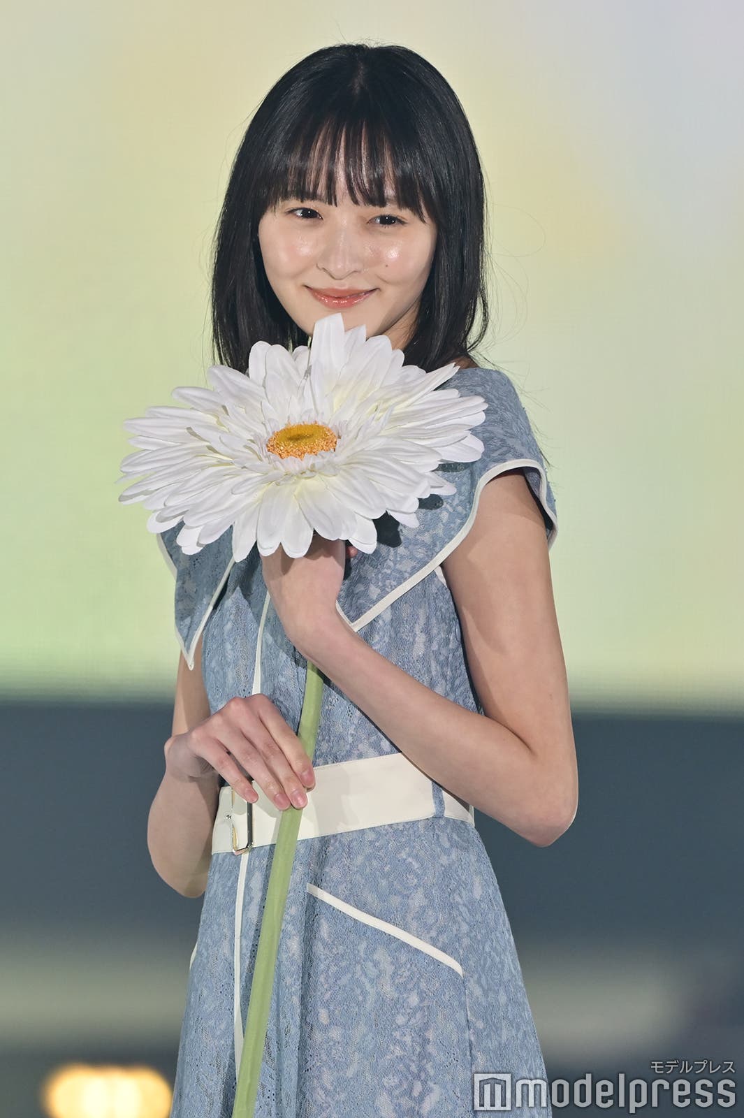 乃木坂46遠藤さくら、大きめ襟がキュート ブルー×レースの上品コーデ【GirlsAward 2025SS】