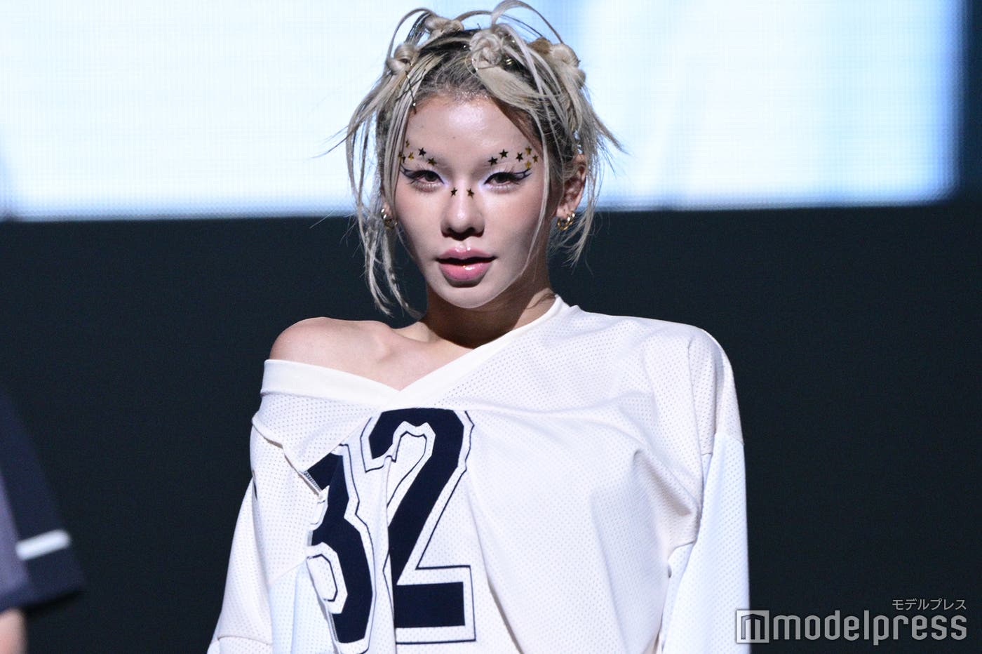 とうあ、美デコルテ際立つ肩落としスタイル 目元の星シールで遊び心光る【TGC香川2025】