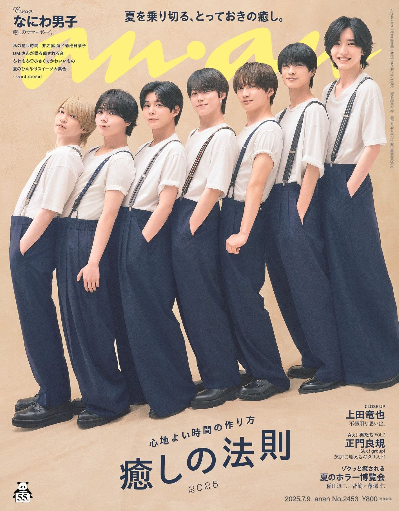 なにわ男子が、7月2日発売の『anan』2453号(マガジンハウス)の表紙に登場。癒やしを感じる瞬間を明かす。