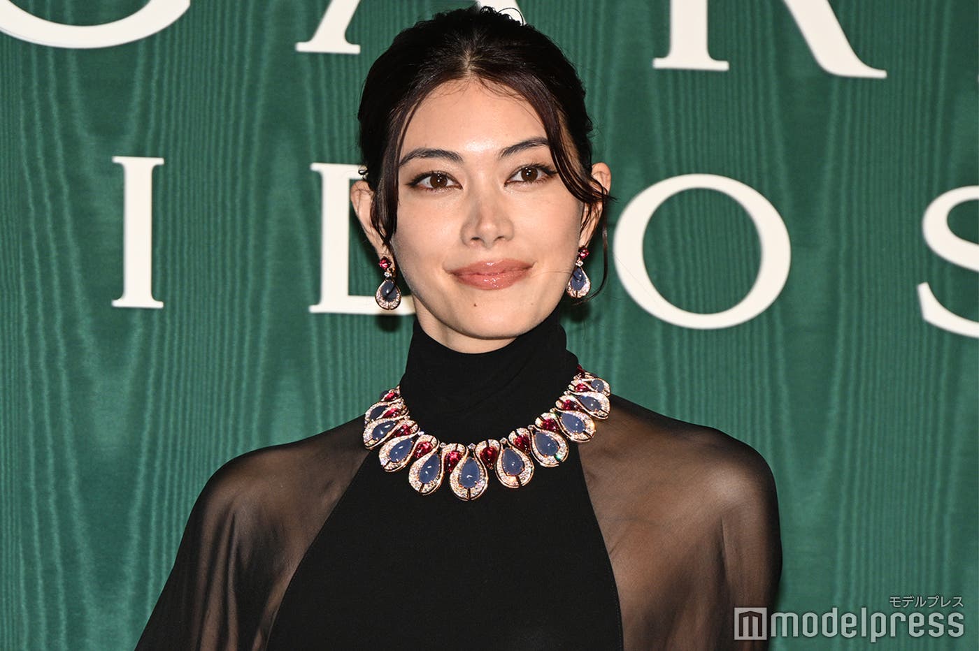 森星、シースルードレスからほっそり二の腕&美肩輝く【ブルガリ展覧会フォトコール第一夜】