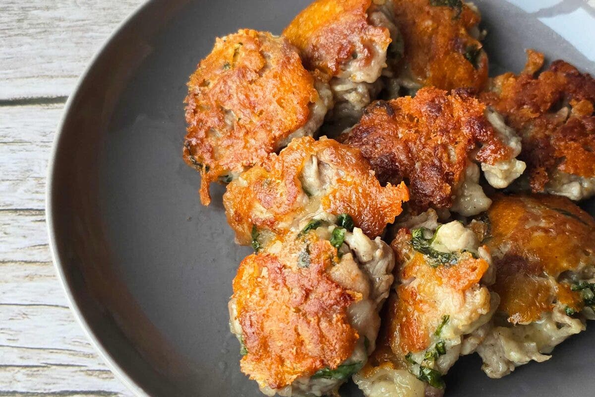 包丁を使わないゆん氏の「カリカリチーズの豚こまボール」。身近な材料だけで激ウマの一品が完成。