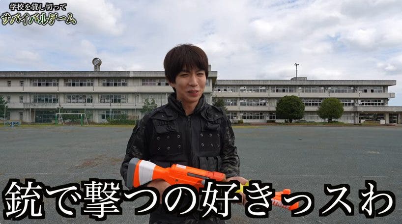 はじめしゃちょー、学校貸切でナーフ銃サバゲ!プロ1人に4人全滅の衝撃