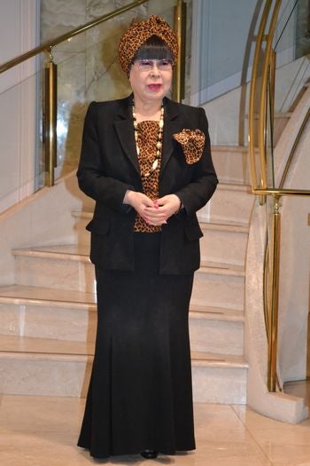 桂由美さんのこの日の装いは、黒のパフスリーブジャケットにタイトなロングスカート、ヒョウ柄のインナーとヘアターバン。とてつもないオーラを放って登場した彼女は、モデルプレスのインタビューに優しい笑顔で答えてくれた。