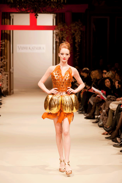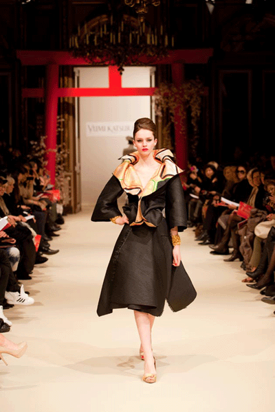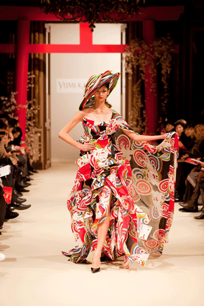 和傘のテクニックによるペチコートやミニスカート、茶器に使う金細工によるミニドレス、金閣寺をモチーフにしたトレンチドレスなどを発表。日本の伝統をファッションで見事に表現し、世界中から高い評価を受けた。