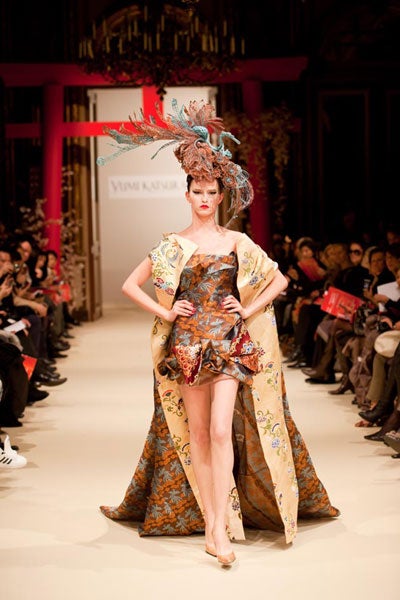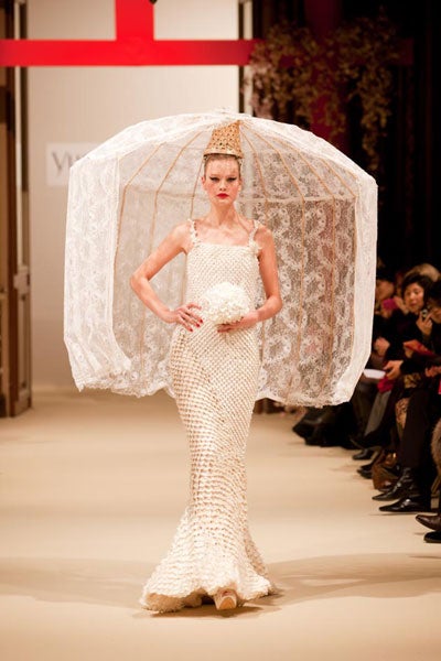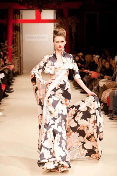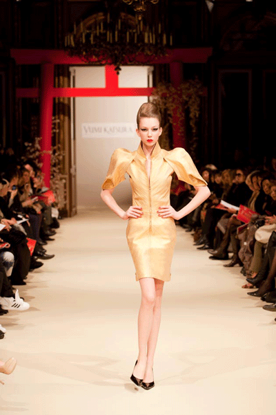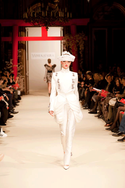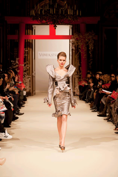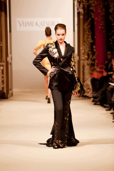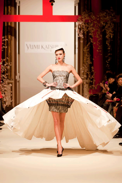 モデルの冨永愛が1月26日、パリにて開催されたファッションショー「2011春夏パリ・オートクチュールコレクション」に出演。ファッションデザイナー桂由美さんが手掛ける2種類の衣装を披露した。