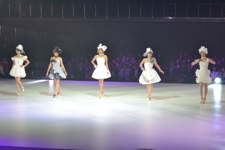 5名のメンバーそれぞれ違ったデザインのドレスは、ヘアのコサージュやハットでどこかクラシカルな印象だった。(モデルプレス)