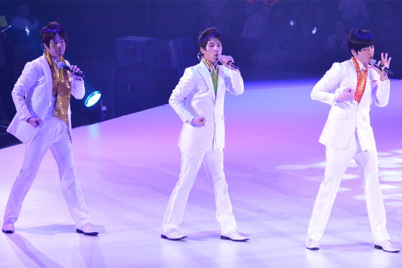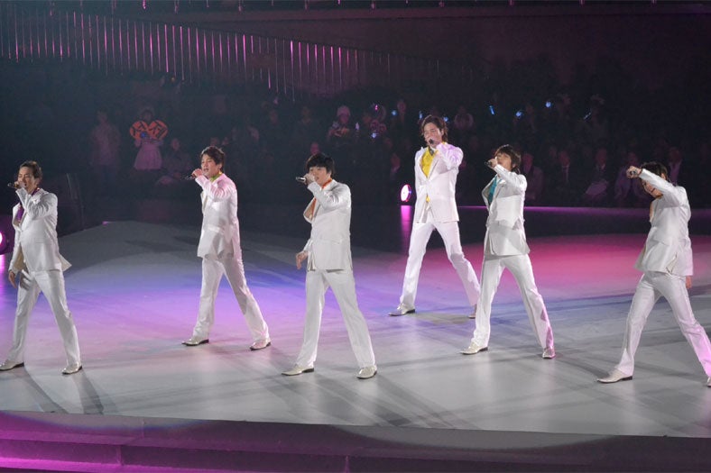 超新星、純白タキシードで熱唱 ファンうっとり
