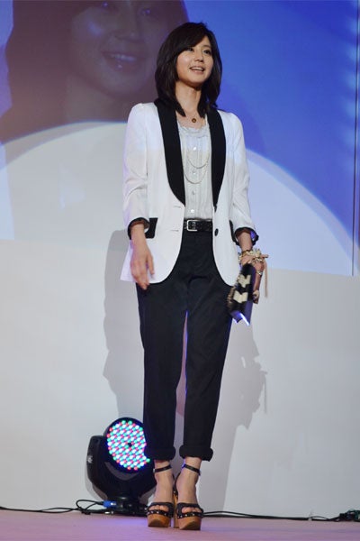 大人気ブランド「JILL by JILLSTUART(ジルバイジルスチュアート)」のモノトーンジャケットにパンツで颯爽とウォーキングした堀北真希は、久々のランウェイの感想を「ちょっと最初は緊張しました。モデルさんたちのようにかっこよくは歩けないけど、着させていただいたお洋服の可愛さが伝わるように歩きました」と語る。