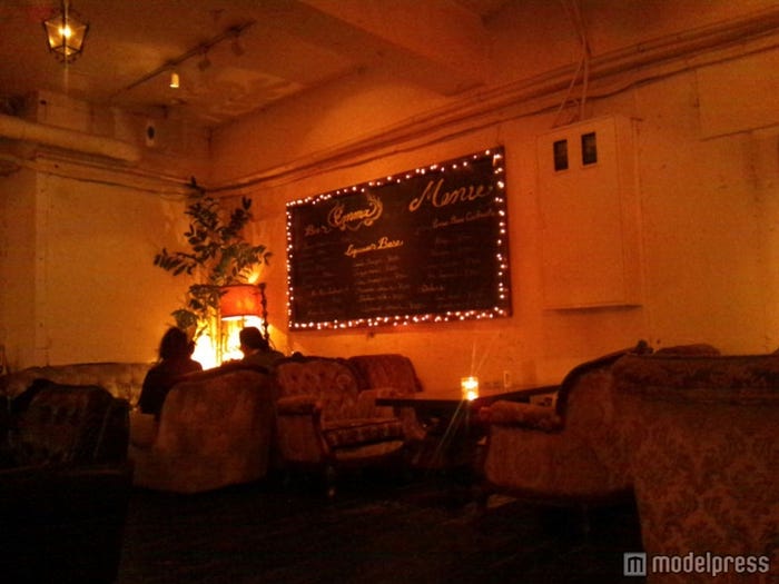 お店の間接照明と、それぞれのテーブルにはキャンドルが置いてあって、夜はほどよい薄暗さでとっても落ち着けるお店です♪