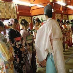 この日、メンバーたちはスタイリストがそれぞれのイメージに合わせて見立てた艶やかな晴れ着姿をお披露目し、成人祈願を行った。